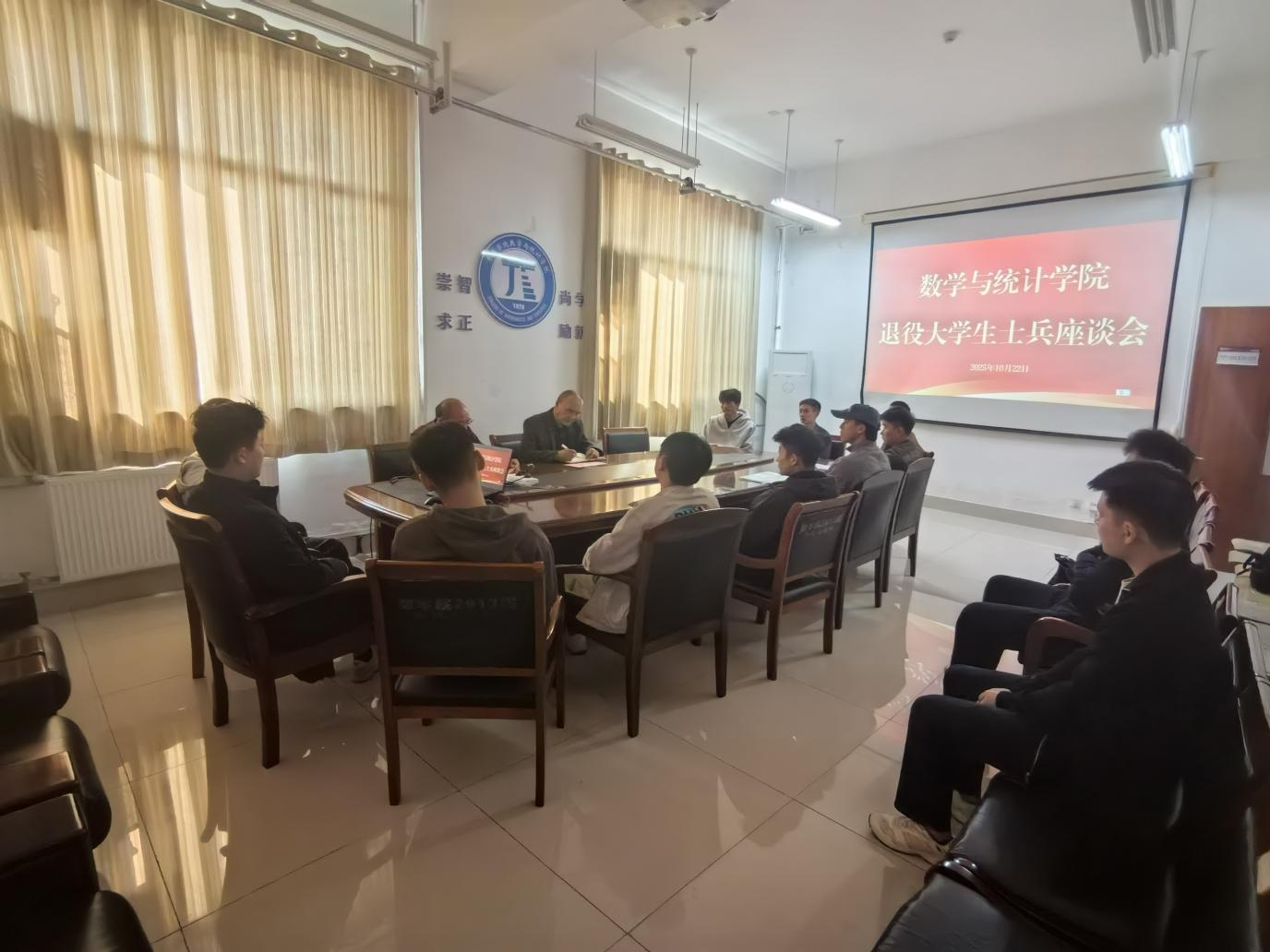 10月22日,数学与统计学院在豁然楼A510会议室举行退役大学生士兵座谈会,24级、25级共12名退役复学学生参会,学院领导出席。退役复学学生依次发言,介绍在部队表现及返校后的学习、思想状况以及个人的学业职业规划。学院党委副书记王高升对退役大学生进行了学业和就业指导,他鼓励退役复学学生其尽快选准发展方向,发扬军人优势,助力学院国防教育,学有所成。学院党委书记王昌龙对退役复学学生提出三点希望:一是继续弘扬部队...