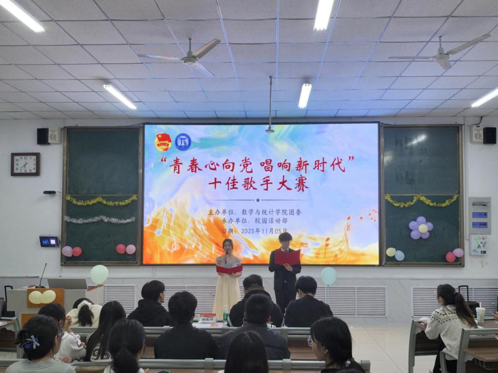 为丰富学生课余生活,营造积极向上的校园文化氛围,11月5日,数学与统计学院在增信楼112教室成功举办“青春心向党,歌唱新时代”十佳歌手比赛。
