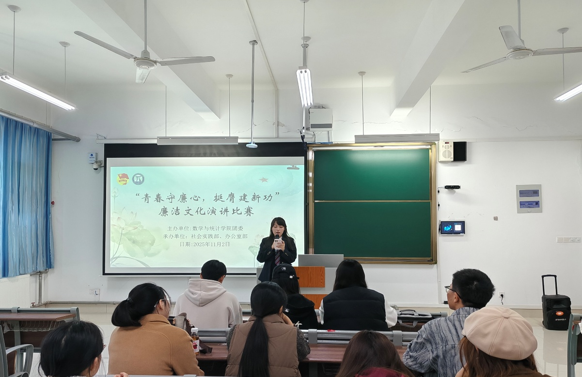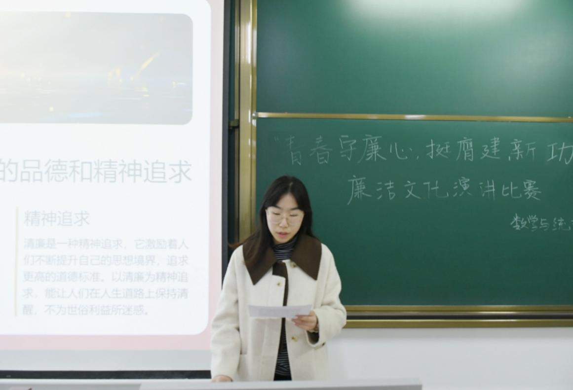 为加强对大学生的廉洁意识教育,引导学生涵养清正廉洁的政治品质,11月2日,数学与统计学院在增信楼A513举办“廉洁活动我来讲”演讲比赛。