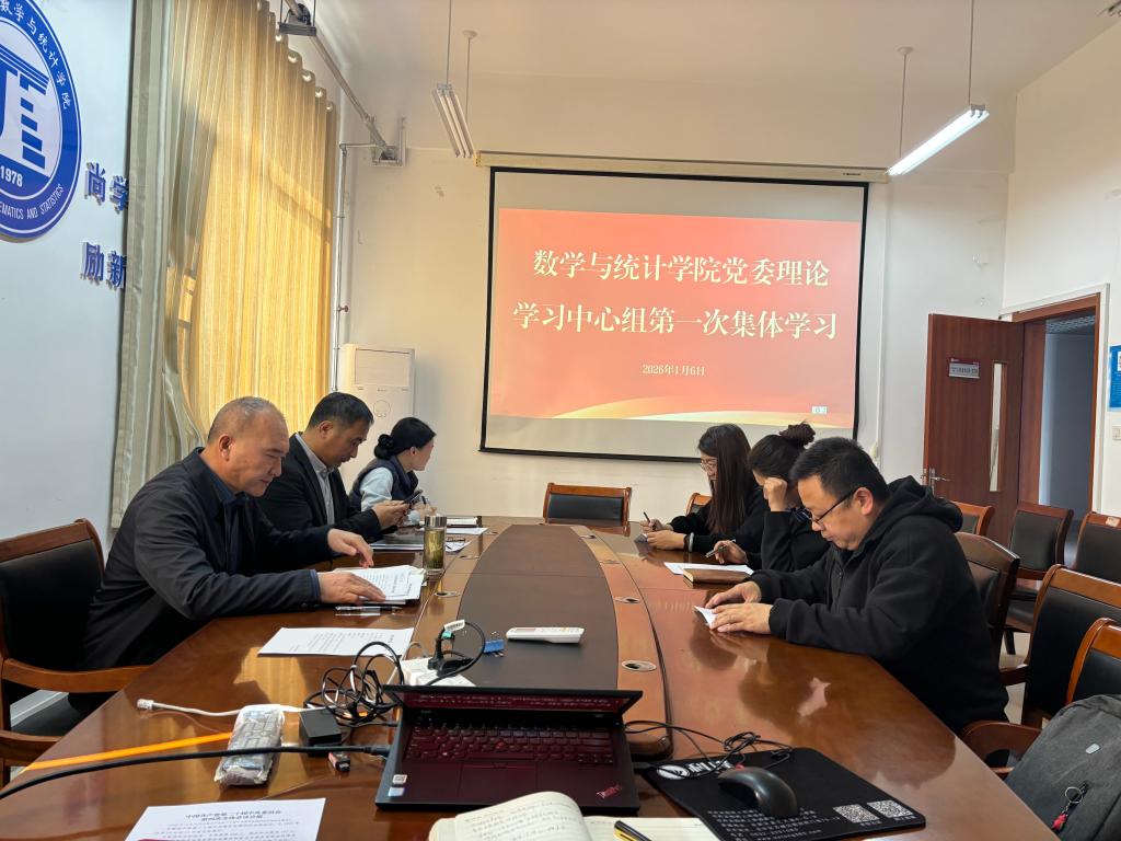 2026年1月6日上午,数学与统计学院党委理论学习中心组在学院会议室开展了2025年度民主生活会会前学习暨第一次理论学习中心组集体学习,会议学习了《学习好贯彻好党的二十届四中全会精神》。学院理论学习中心组成员参加学习,数学与统计学院党委书记王昌龙主持学习。组织员程龙列席。